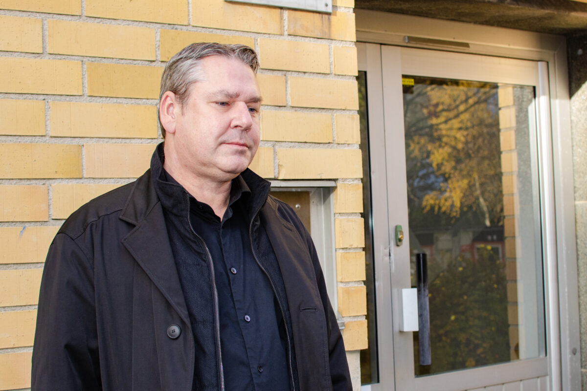 Ytterligare en kvart senare kommer kronofogden Jonas ut. Han vill inte ha sitt efternamn i tidningen.