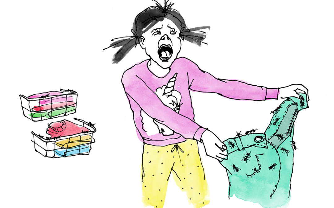 Vi har myror i hela lägenheten. De är i skåp, lådor, golv och sängar. Vad ska vi ta oss till. De kommer från under huset tror jag. Hyresvärden gör ingenting.