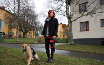 Stephanie Hallander, med hunden Hamra, tycker att det är bra att bostadsbolag tar referenser på blivande hyresgäster. ”Jag skulle inte vilja hyra ut till vem som helst,” säger hon och tycker att det är viktigt att bostadsbolagen bland annat kontrollerar att hyresgästen tidigare har betalat hyran i tid.