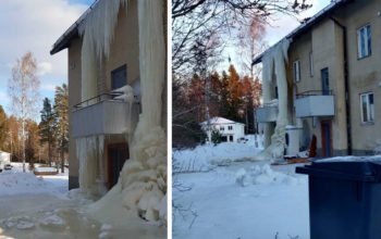 Ludvika En vattenläcka på en vind i ett av skandalhusen i Blötberget har skapat en istapp som är en tickande bomb. - Den är en fara för allmänheten, säger plåtslagaren Håkan Fredriksson som arbetar med att ta bort istappar från tak. 15 februari 2021 kl 15:56