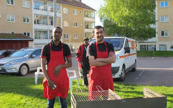Foto: HELENE HJORTH-ERICKSON, Ahmed Abdi och Khaled Abbo var grillmästare under kvällen på Bullermyren.