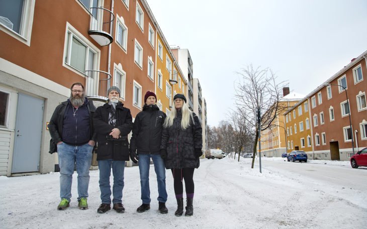 Tord Wallén, Mikael Eriksson, Per Jansson och Camilla Dal bor alla i lägenheter som ska säljas på Brynäs i Gävle och har reagerat starkt mot att kommunen säljer deras hem.