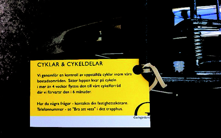 Gävle Gavlegårdarna lappar nu trasiga cyklar i förråd och cykelställ. Den som inte tar hand om sin cykel mister den. 20 maj 2013 kl 14:48