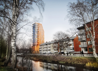 Gävleborg Sandvikenhus vill bygga ett 16-våningars hus i centrala Sandviken. Blir det av blir det kommunens högsta boningshus, dubbelt så högt som det högsta huset i dag. 10 januari 2012 kl 11:29