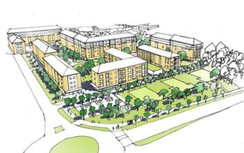 Så här tänker sig fastighetsbolaget Aranäs att Tingberget ska se ut efter renoveringar och tillbyggnader. Bland annat vill företaget bygga till nya våningar på flera hus. Dessutom planeras flera nya punkthus, men de är endast markerade med läge i förgrunden på skissen.