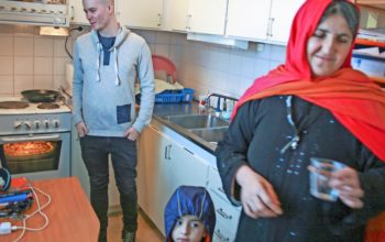Samling i köket. Jerry Freij har koll på Janssons frestelse i ugnen. Serbabi Ranam med sonen Beitula hämtar vatten att dricka till maten. Det doftar ljuvligt – snart börjar festen., Gäster. Amira Mohammad, Bisrat Kesete, Mousa Osman, Ismail Mohammed och Simret Gabrejesus kommer alla från Eritrea., Smakfullt. Radj Hadjar trivs på festen. Han har lagat harisi, en söt och mjuk kaka. ”Vackert land, vackert folk, vackert allting,” säger han., Feststämning. Dansen kommer i gång och det spritter i benen. De som inte dansar klappar takten till musiken., , Lena Daxberg., Beitula Ranam trivs fint i feststämningen på Stålhagsgården., Bordet dignar och ljuvliga dofter från flera länder blandas. Det är fest på Stålhagsgården.