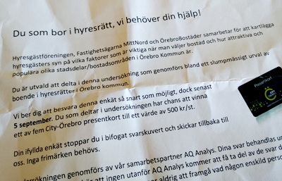 Örebro Hyresgästföreningen visste att följebrevet till den enkät som 3000 hyresgäster fått hem, utelämnade att svaren kan komma att höja hyran. Och det var meningen. 5 september 2014 kl 13:55