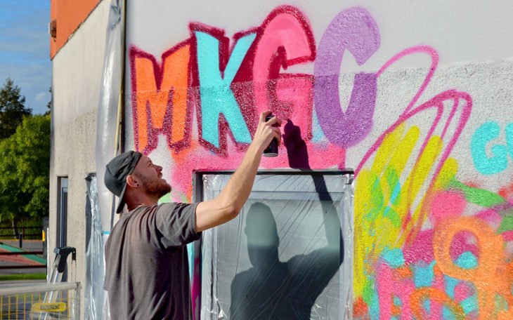 Konstnären Captain Kris: "När alla som hjälpt till lagt grunden i starka färger ska jag fylla på med andra kulörer och låta mitt arbete slingra sig och växa upp högre på väggen. Det blir naturformer", säger han.