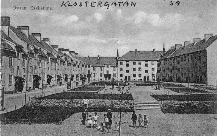 Mötet på gården i kvarteret Ostran och striden som följde blev starten för Hyresgästföreningen i Eskilstuna. Samtliga hyresgäster i Ostrans 126 lägenheter ska sedan ha gått med i föreningen. Bilden är tagen ungefär vid den här tiden, 1918–1919.