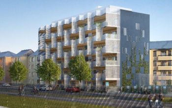 Idéskiss över hur huset med studentbostäderna var tänkt att se ut.