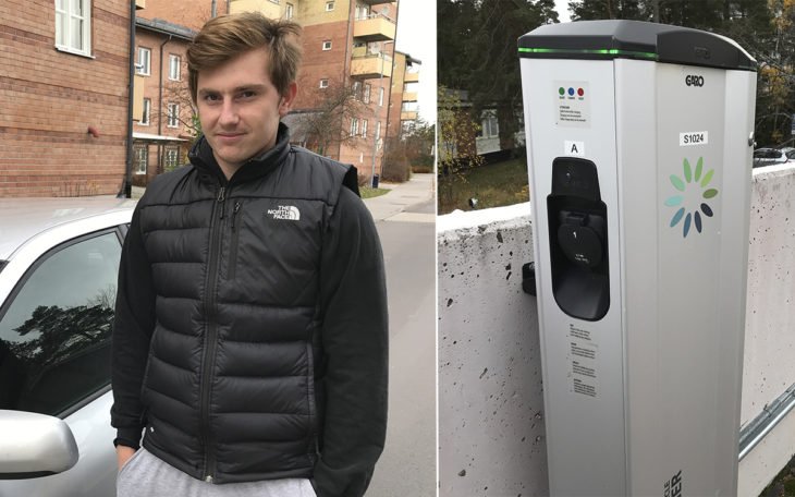 Sebastian Svahn är positiv till laddstolparna för elbilar. Han skulle gärna ha en elhybridsbil.