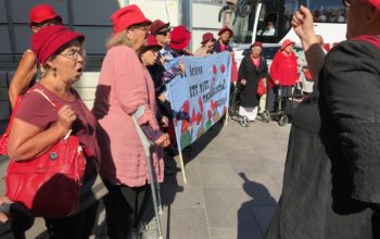 Tantpatrullens uppstart på Mynttorget efter sommaren. Inger Stark längst till vänster i bild.