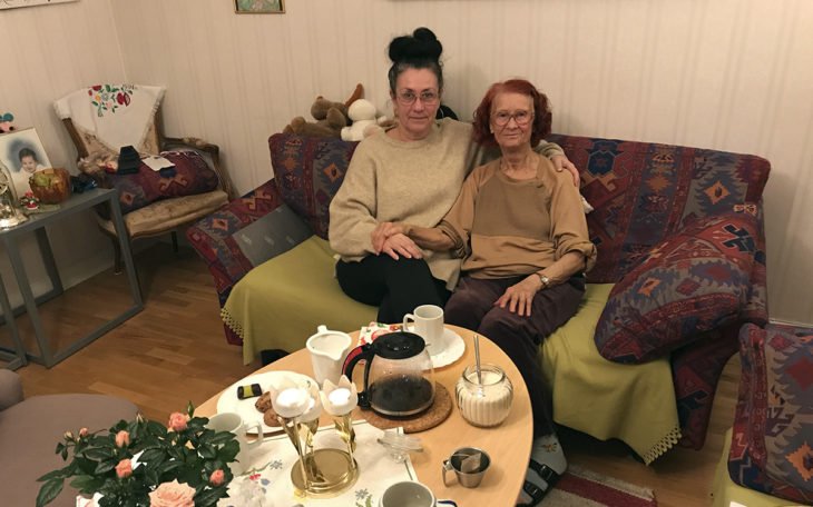Erika och Elisabeth Györi bjuder på fika i Elisabeths lägenhet, som hon fortfarande ser som sin hyresrätt, trots att hennes hyresvärd påstår att hon har gått med på att köpa den.