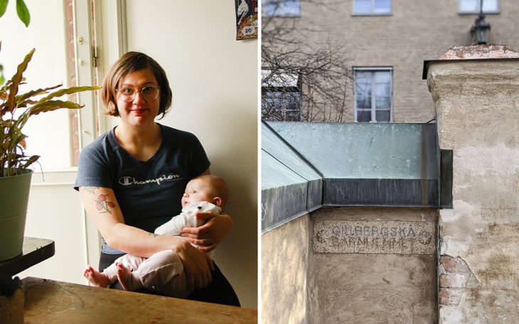 Linn Spross, här med sonen Bo, har tidigare forskat om välfärdspolitikens historia, men husockupationer var ett nytt ämne för henne. Till höger Gillbergska huset i Luthagen, som ockuperades 1989.