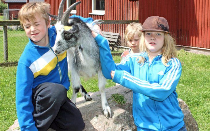 Uppsalahems hyresgäster Noah Kristensson-Palm och Benjamin Bergström-Andersson tycker det är särskilt kul att vara med getterna på 4H-gården i Gränby., ”På läger blir det att man är mer ute och ägnar mindre tid åt tv och spel”, säger Benjamin Bergström-Andersson med kanin i famnen., Längst fram på hölasset sitter Josefin, Alisa, Angelica och Lisa.,
