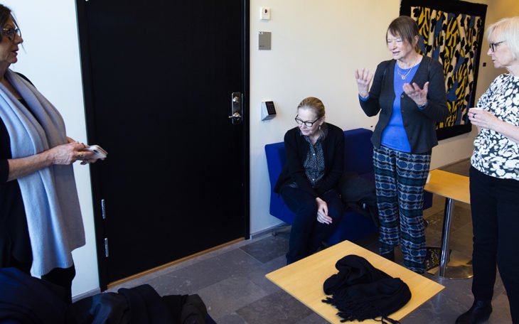 Trollhättan Vaktmästarna håller på att vattna de nyplanterade petuniorna och det doftar av nytuslagen hägg. Vid ett av borden har tre damer dukat upp förmiddagskaffe i solskenet. Det är Gerd Sakseter, Lisbeth Eklund och Ann-Christine Berntsson som bryter sin ensamhet i coronatider och tar en gemensam utefika. 13 maj 2020 kl 08:30