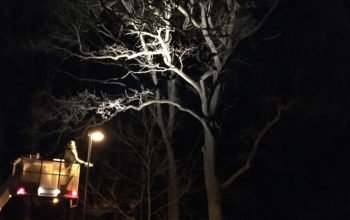 Under projektet ska ett 60-tal armaturer som belyser mörka partier längs gång- och cykelvägarna mellan Kronogården och Trollhättans centrum sättas upp. Bilden är tagen vid en provbelysning.