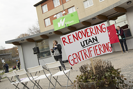 Göteborg Över hundra personer samlades utanför Willhems kontor i Biskopsgården igår. Nätverket Biskopsgårdens Framtid prostesterar mot bolagets krav på hyreshöjningar. 3 april 2014 kl 17:27