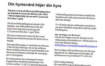 Göteborg Runt 2 700 hushåll hos Gårdstensbostäder får hyreshöjningar på 1,55 procent. 21 mars 2014 kl 10:28