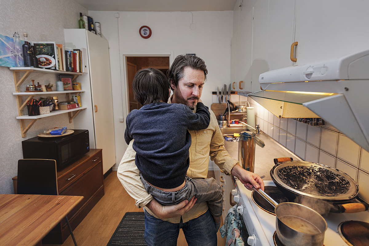 ”Pappa, äta”, säger Love. Efter lite memoryspel i köket är det dags att koka pasta. Love har Downs syndrom och kan lätt bli stressad av förändringar.