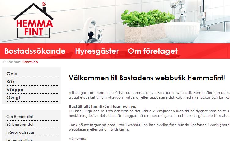 Kort och gott vill Bostaden AB ge sina hyresgäster en chans att styra över underhåll och standardhöjning. I webbutiken Hemmafint kan nya tapeter, golv, kök och annat beställas.
