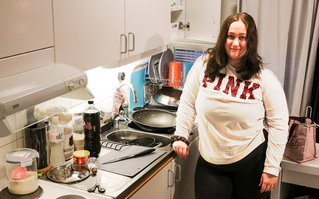 Hem & Hyra träffade Amanda för några veckor sedan. Men allt började i månadsskiftet augusti-september i fjol när ett vattenrör gick sönder i en av lägenheterna i studentboendet, som ägs av Svenska kyrkan. Två enrumslägenheter blev närmast totalförstörda när vattnet forsade ut.
