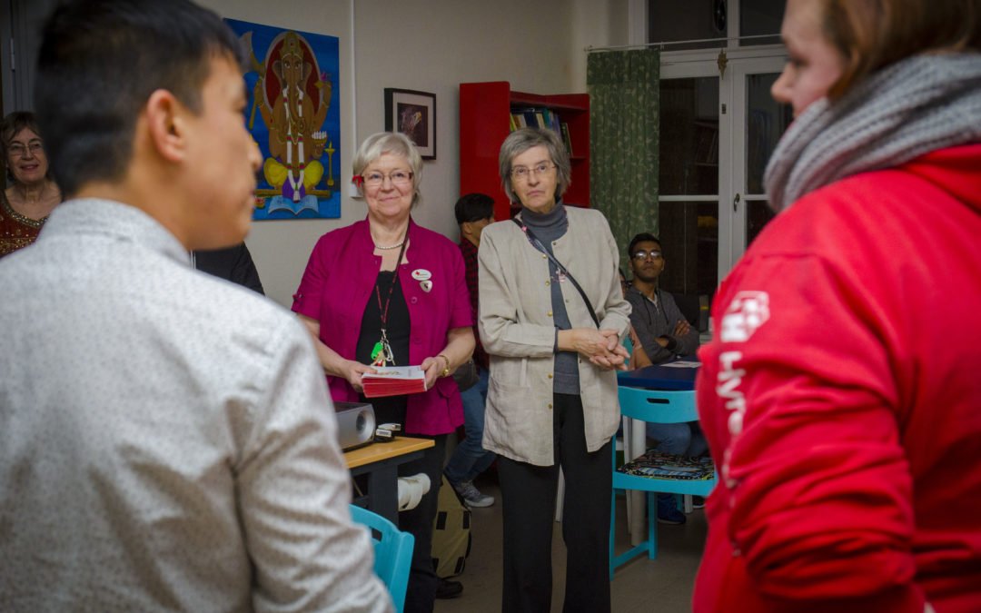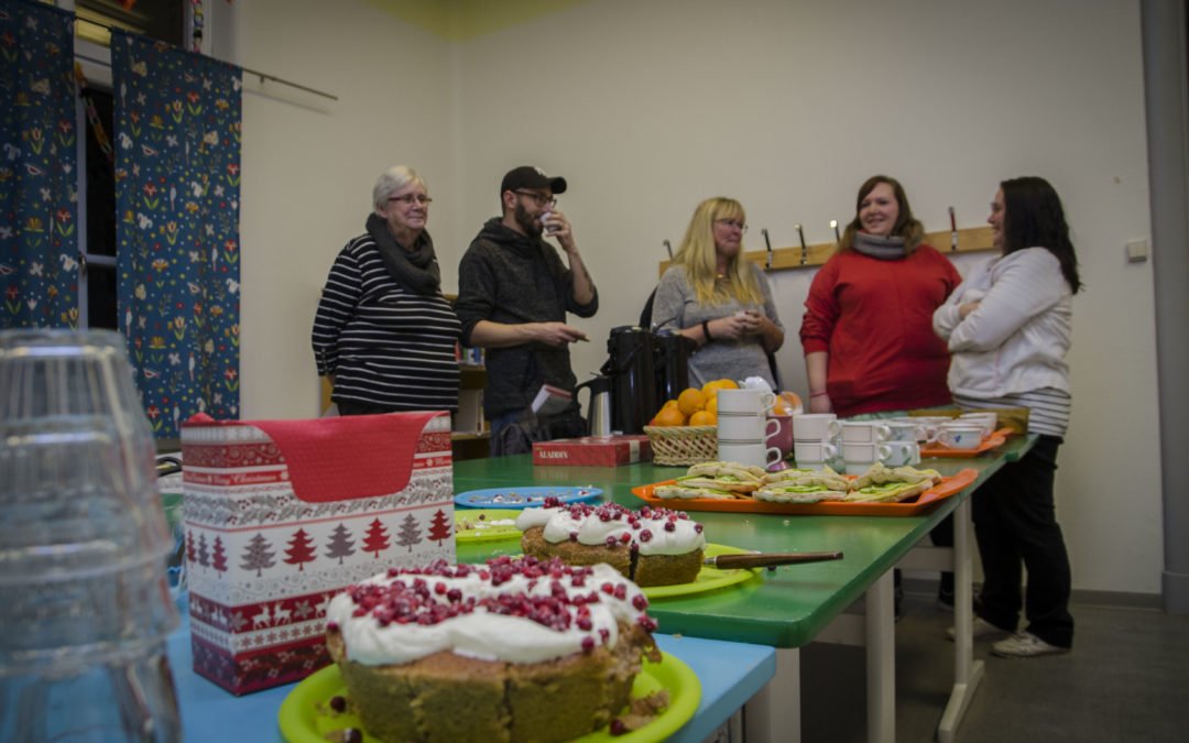 Ett 30-tal killar som kommit som ensamkommande flyktingar till Sverige kom till lokalen. De blev glatt överraskade över att få presenter. Ali och Elias, som båda varit i Sverige i ungefär två år, sa att de inte kan så mycket om svenskt julfirande, men att de förstått att man brukar få julklappar och äta god mat. Båda har fått avslag på sina asylansökningar och väntar oroligt om vad som ska hända med dem, men de försöker se positivt på framtiden ändå.
