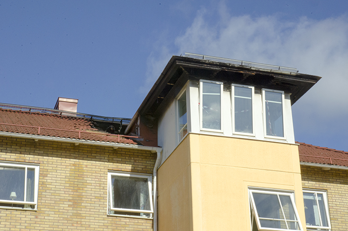 Hem & Hyra har tidigare berättat om branden som, natten till den sjunde juni, bröt ut på Järvstigen 4 i Uddevalla. När räddningstjänsten kom till platsen brann det så häftigt på vinden att lågorna slog ut genom taket. Ingen människa kom till skada men ett tjugotal personer fick evakueras och ett omfattande saneringsarbete följde.