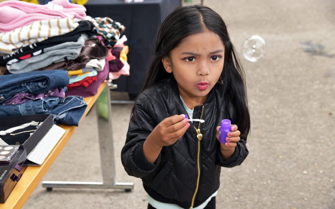 Bubblande glädje. Svenska kyrkans miniflaskor med klassiska såpbubblor gick snabbt åt. Foto: Åsa Eriksson