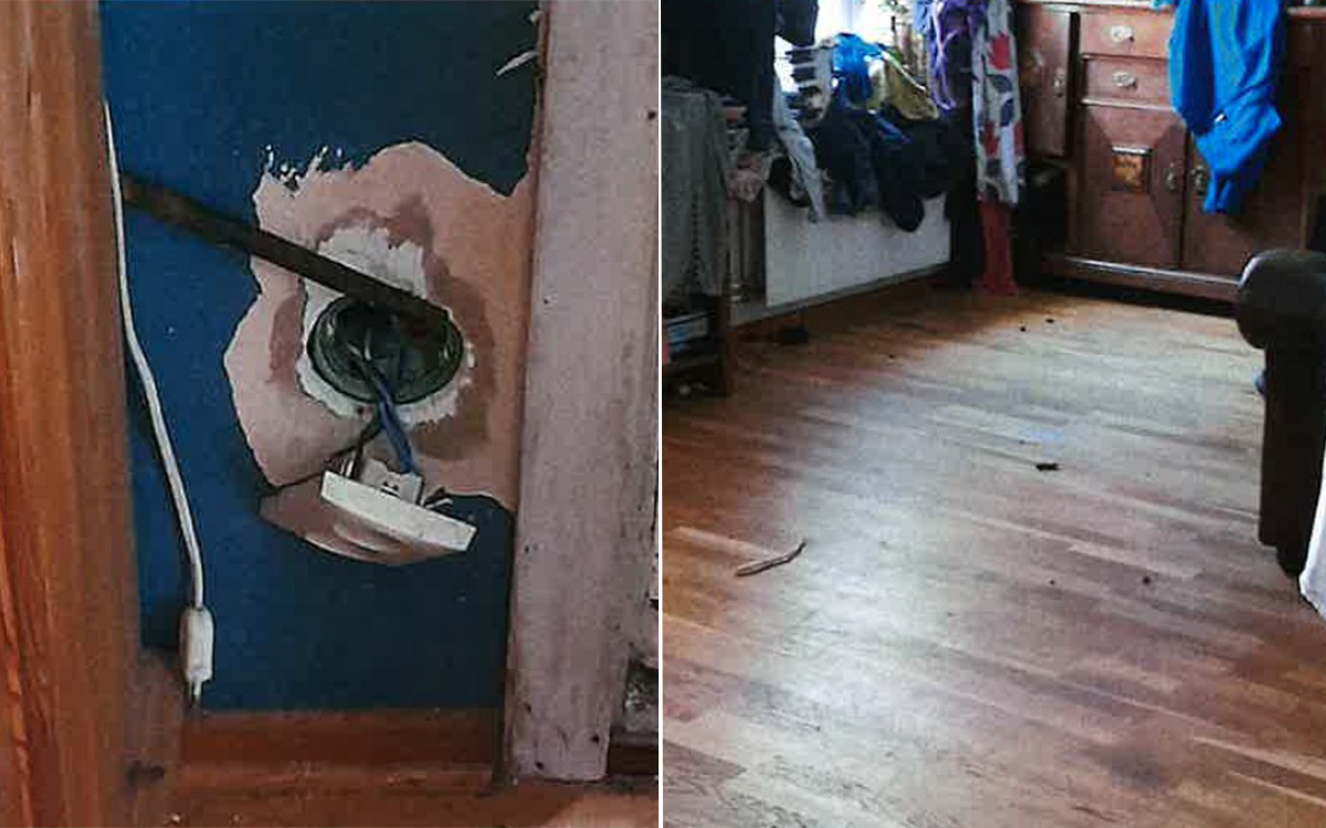 I samband med ett bråk kom polisen till lägenheten. De möttes av vad de beskriver som ”en väldigt misskött lägenhet” med avföring ”överallt”.
