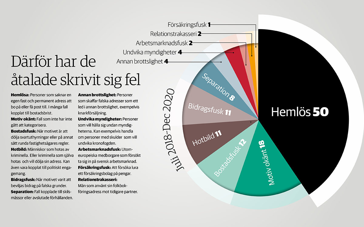 Hem & Hyras unika granskning tidigare i år visar att lagen slår snett. Hittills är det framför allt personer utan ett eget hem som dragits inför rätta misstänkta för folkbokföringsbrott, inte yrkeskriminella eller välfärdsfuskare. Så blev det trots att justitieminister Morgan Johansson (S) lovade, i samband med lagskärpningen sommaren 2018, att man inte skulle åtala i ringa fall. Folk som saknade uppsåt att utnyttja lagen skulle inte alls sättas dit.
