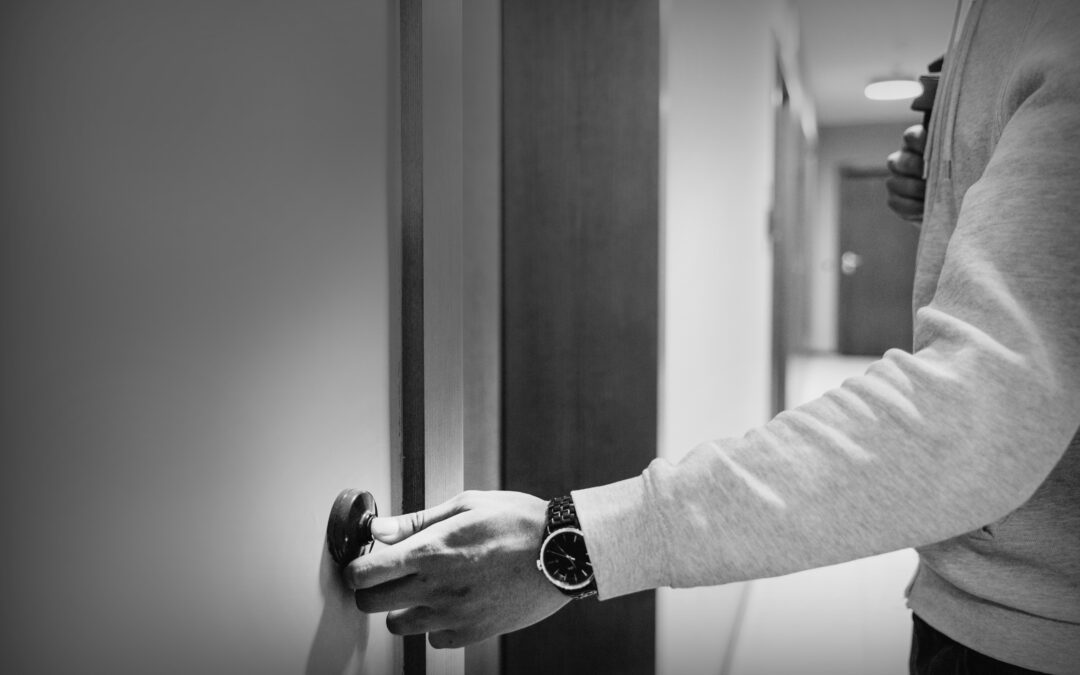 Men när hon drog upp dörren med fart så var det istället grannen som stod där utanför och han fick dörren rakt i pannan. Kvinnan upplevde det som att han stått framåtböjd och kikat in i nyckelhålet.