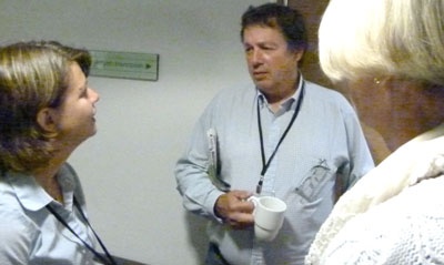 Claes Lindholm, SCB, diskuterar med Viveca Starck Jusélius och Rigmor Wilderoth från Hyresgästföreningen.