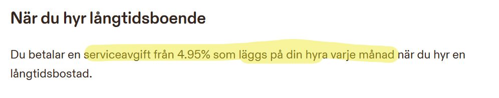 På Qasas hemsida står det: ”Du betalar en serviceavgift från 4,95 % som läggs på din hyra varje månad när du hyr en långtidsbostad.”