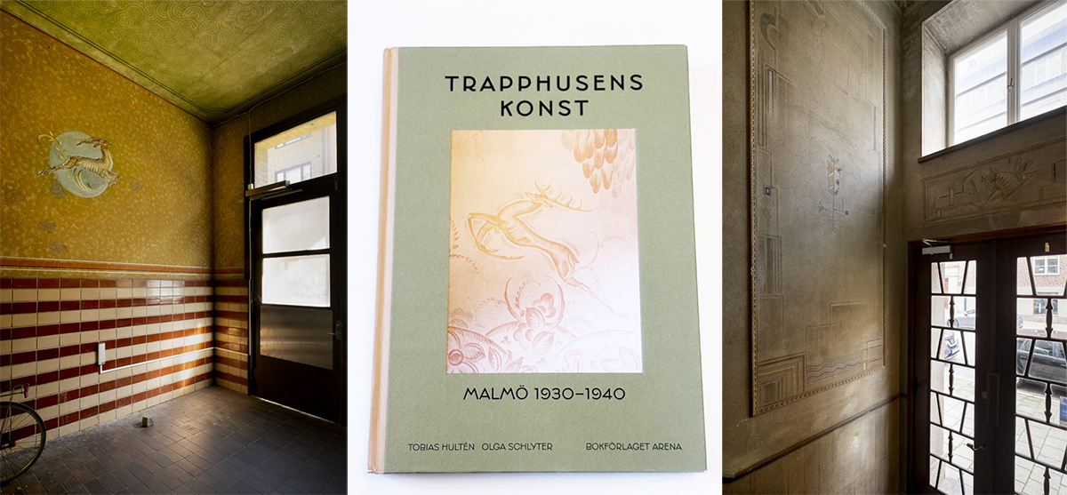 Historien om trapphusmålarna i Malmö skulle kunna ha fallit i glömska. Men fotografen Tobias Hultén och byggnadsantikvarien Olga Schlyter har kartlagt fenomenet i sin nya bok Trapphusens konst. Där man kan läsa om Hjalmar Book och de andra konstnärerna.