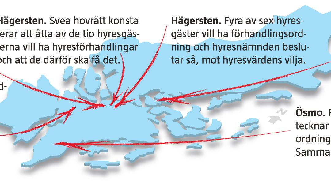 Trots det kanske så många som var tionde hyresgäst inte får sin hyra förhandlad. Många bor i ombildade bostadsrättsföreningar, andra i mindre hyreshus eller i hyrda villor.
