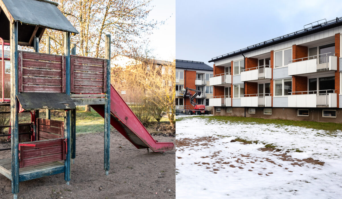 Lekplatsen som tagits bort i kvarteret Hackan menar Stefan Lindström beror på dåligt underhåll sedan Lessebohus tid.