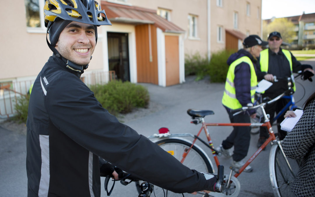 En efter en dyker de upp utanför Hyresgästföreningen i Kolbäcksdalens tegelgula lokal. Alla har de illgula västar med Hyresgästföreningens logga på, cykelhjälmar och samtliga är på ett påfallande gott humör. Det är dags för premiärturen av Hallstatrampen, det motionslopp som Hyresgästföreningen Kolbäcksdalen arrangerar sedan 26 år tillbaka.
