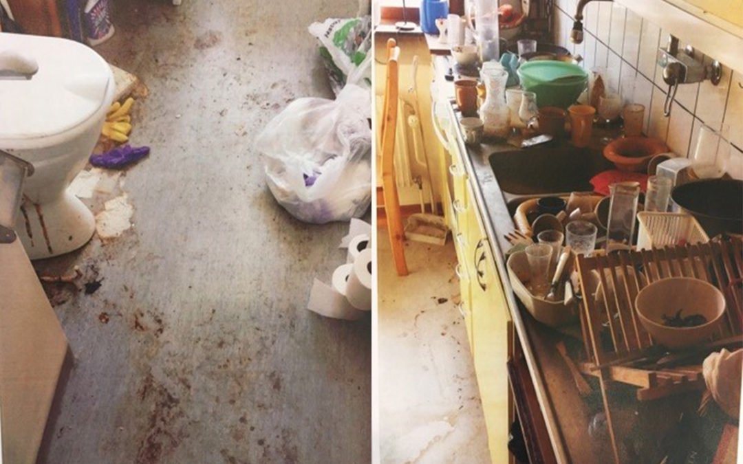 Hyresgästerna har hyrt två rum och kök sedan 2014 av en privat värd i Kristianstad. I januari kontaktades värden då det blivit stopp i hyresgästernas toalett. Enligt värden var lägenheten kraftigt vanvårdad vilket han upplyste hyresgästerna om. I maj hade hyresgästerna ingen ström och värden gjorde ett nytt besök. Denna gång stank lägenheten avföring. Kylskåpet var fullt med matrester och diskbänken hade högar med gammal disk. Badrummet var kraftigt nedsmutsat med bland annat avföring på vitvaror och golv.