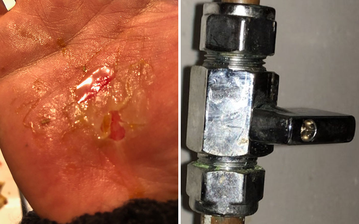Enligt hyresgästens vittnesmål i tingsrätten stängde han av vattnet med hjälp av en så kallad minikulventil på röret. Men när han började skruva isär rören gick ventilen sönder och det sprutade ut vatten.