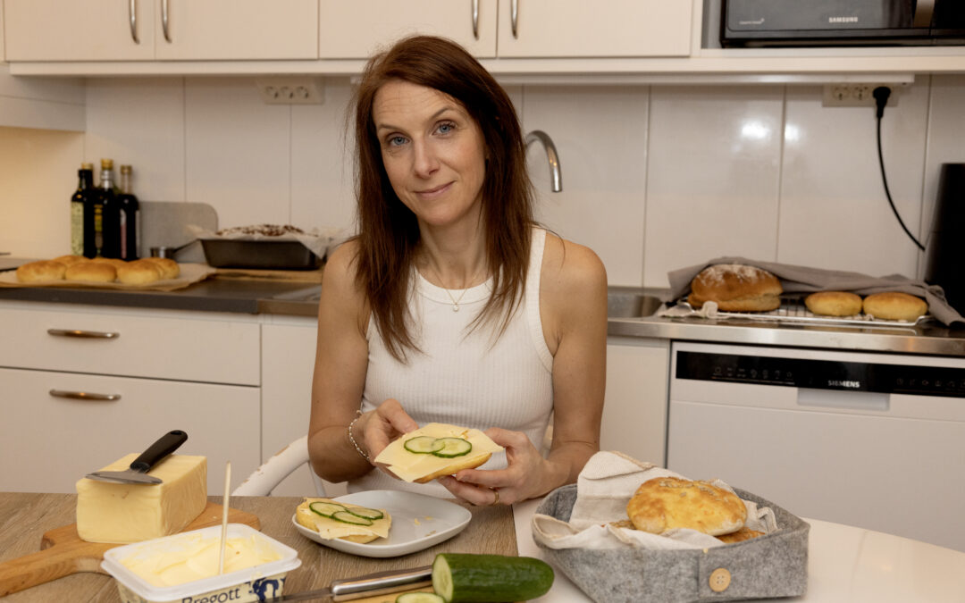 En doft av nygräddat sprider sig från köket i fyrarummaren på Lidingö. Anna Maripuu fyller en brödkorg med några av de runda tekakorna och slår sig ner vid bordet. Snart har ett av bröden fått sin gyllene ovansida avskuren och smöret smälter på snittytan.