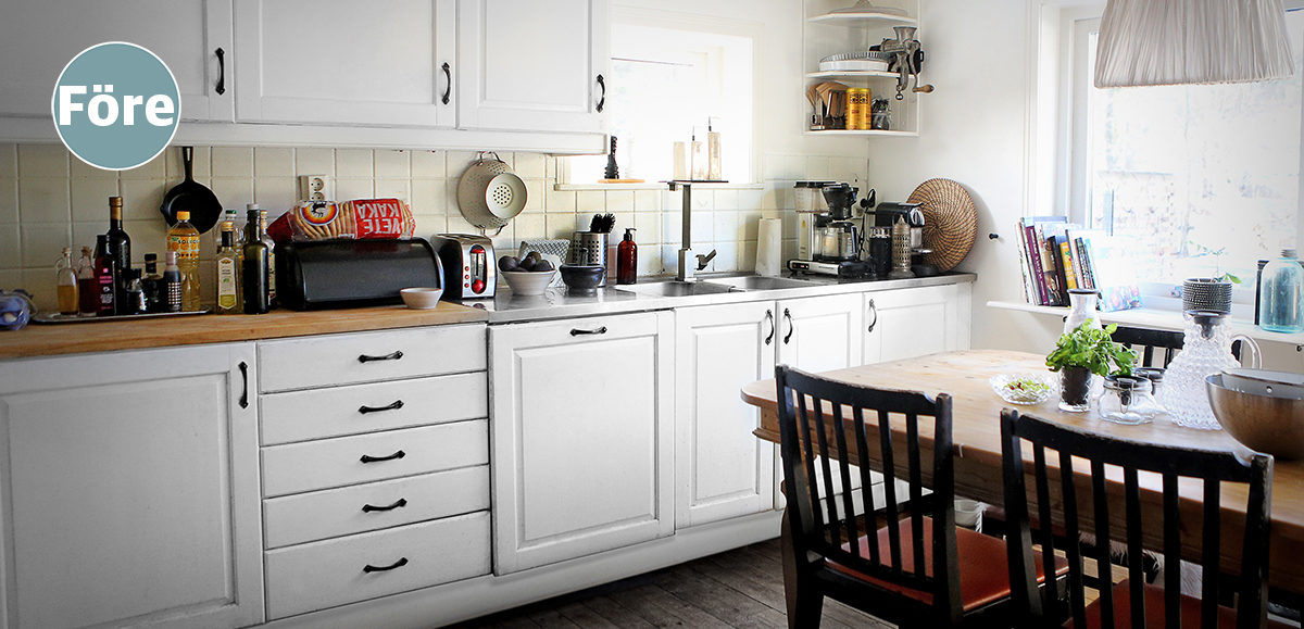 - Rensa! Många av oss har diverse hushållsmaskiner på bänken, brödlådor och råvaror. Detta ger ett stökigt intryck. Försök förvara köksmaskinerna i skåpen eller på en liten sidovagn.